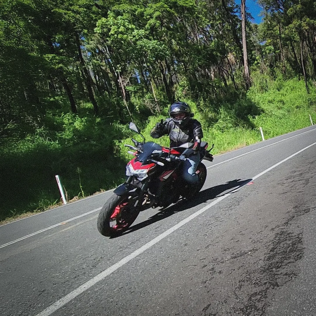 Everyone has a place they like to take their bike for a ride, a ride where they can go a little quicker than usual or just have fun. A good road somewhere full of curves and turns, or maybe it's just a big straight line. It's different for everyone, and that's cool. I take my bikes to Koumala range. It's tight with lots of turns, a nice road surface, and it's not fast, no long straights, it's all about getting the bike to turn. That's the sort of riding I enjoy. You could, if you wanted to, ride this place fast, but it's a long way from help, and sometimes riding fast can end in you needing help.