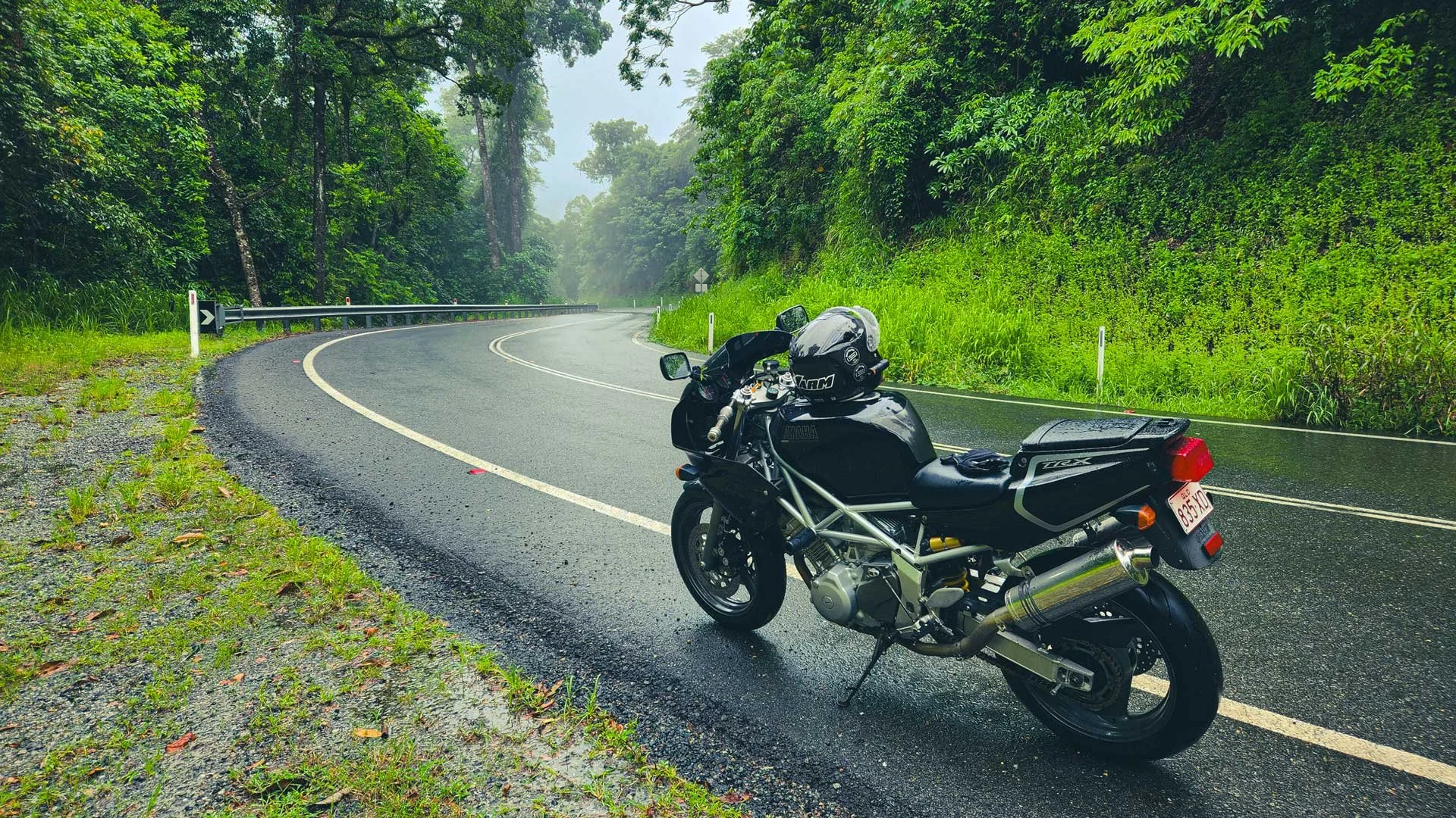 If it's raining, I purposefully take my old TRX 850 to Koumala range. The wetter the better on that old tank. For those who dont know, the TRX has no ABS or traction control. No tech. Just you and the meat between your ears to keep the bike on the road. This is not for everyone, and that's fine. My TRX has GOOD tyres, and I give the bike a more thorough-than-usual pre-ride check, ensuring tyre pressures, brakes, and suspension are all 100% ready. Every bike is different. Heck, every bike of the exact same make and model can be different - different enough to make a big difference in a situation where a little difference puts an end to a fun ride. TLDR; set YOUR bike up so it's right for you and how and where you ride.