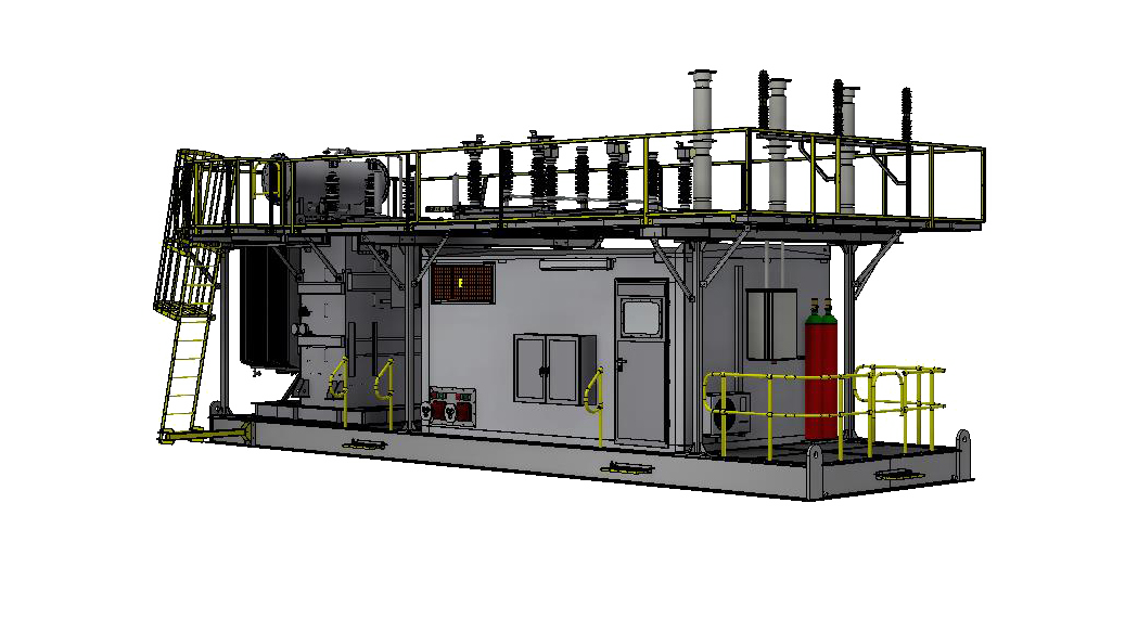 Open cut substation - Design switchroom to fit designated components and electrical clearances/cabling. Design skid base to suit switchroom and HV transformer. Design upper deck to fit skid base and fit selected HV switching. Access to the upper deck to AS1657. Along the way adhering to customer requirements.