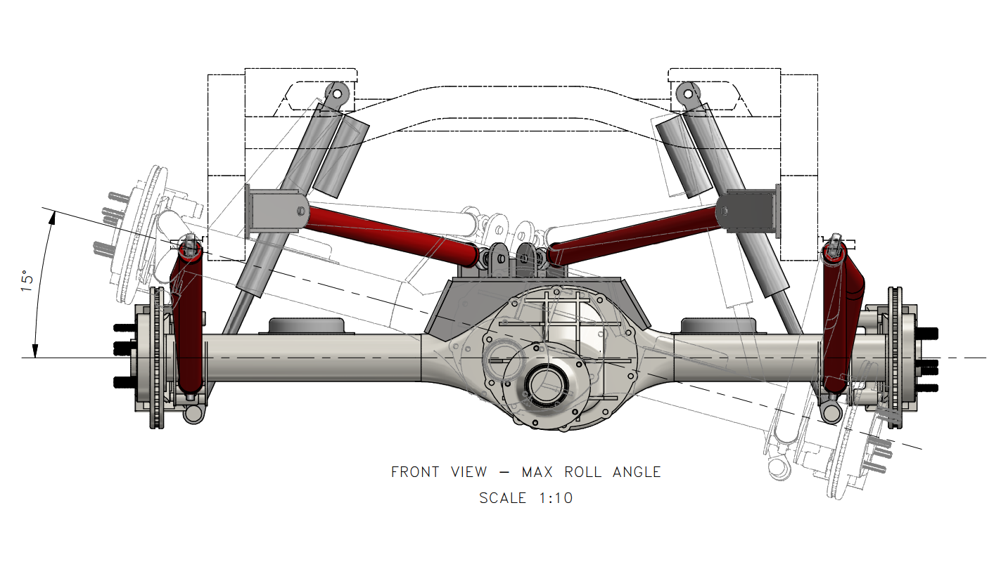 Rear Suspension Arrangement for Competition Truck - Measure existing chassis and key suspension points. Design linkages and generate drawings for linkages using rod end bearings and rubber bushes.